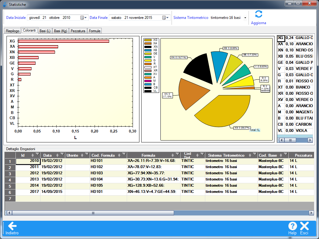 - Sistema avanzato di log e di report, inclusa gestione del tintometro, delle basi e dei coloranti.